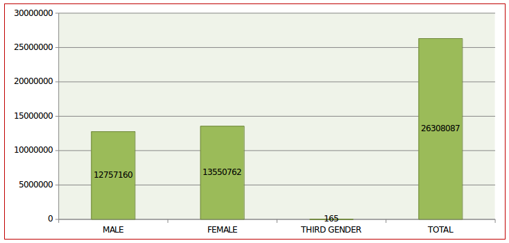| STATE | MALE | FEMALE | THIRD GENDER | TOTAL |